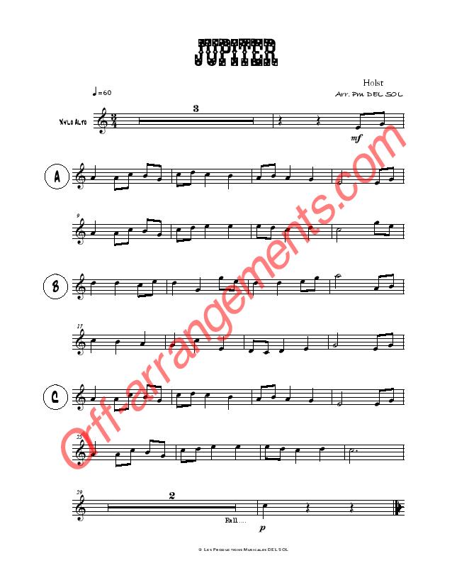 This is a magnificent arrangement which inspires the feeling of pride. The melody, given for a rare occasion to bass xylophone, is supported by low-register strings which give warmth and intensity to the song. Jupiter is a beautiful arrangement, particularly effective during an award show or any event celebrating success.